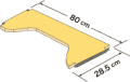 中央部の奥行が約15cmの棚板です。限られたスペースを有効に使いたい場合に使用します。サイズ(80 x 15/30 cm)の見方は、[長さ(横幅) x 中央の奥行/金具のサイズ(*)]です。