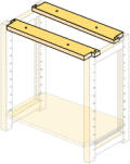 テーブルトップを天板として棚ユニットにのせて固定するための補助板です。 サポートリストをアップライトのクロスピース(横木)にねじ留めし、その上にテーブルトップ(反り止め棒を外したもの)を置き、下側からサポートリストの貫通穴を通して木ねじで固定します。 テーブルトップに使用する場合、2個必要になります。<棚ユニット幅50cm用>
