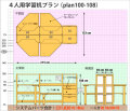仲良し兄弟(姉妹)の4人分の学習机/デスクのプラン例です。
