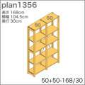 イキクッカのシステムパーツを組み合わせて作った 高さ168cm、奥行30cm、横幅105cmの本棚/収納棚のプランです。