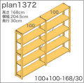 イキクッカのシステムパーツを組み合わせて作った 高さ168cm、奥行30cm、横幅205cmの本棚/収納棚のプランです。