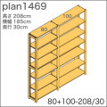 イキクッカのシステムパーツを組み合わせて作った横幅185cm、高さ208cm、奥行30cmの本棚/収納棚のプランです。